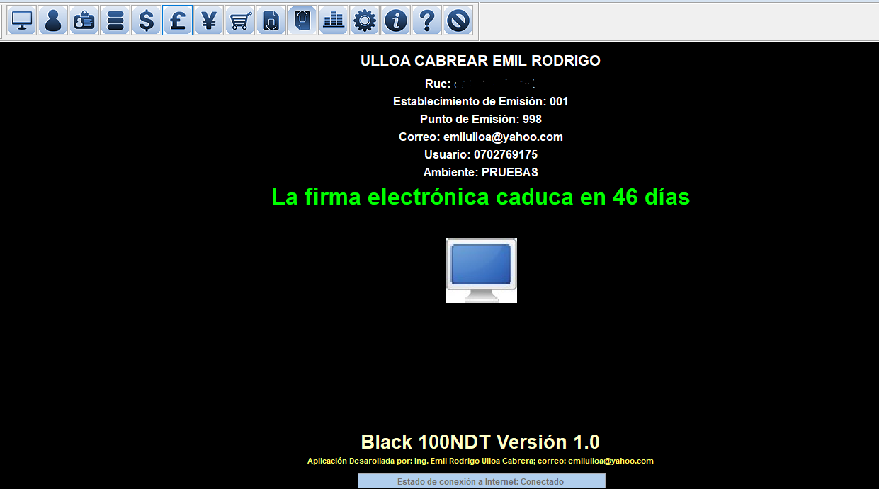 El software, en cada ejecución realiza la comprobación de la vigencia de la firma electrónica y se muestran los dias restantes antes de caducar.