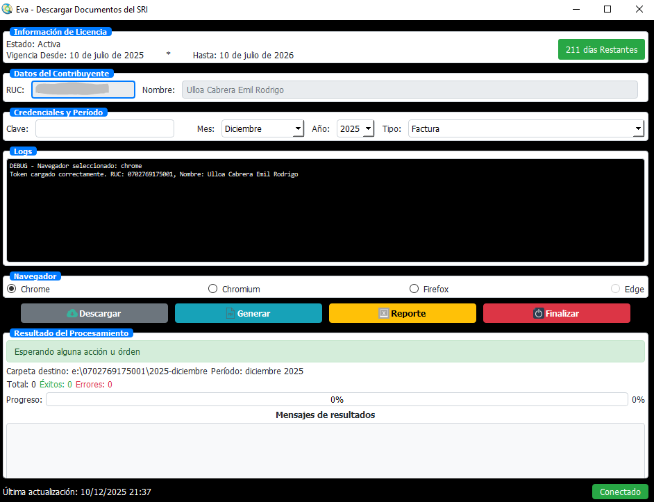 Descarga todos los documentos recibidos en el SRI, si es con archivo, deoende de la configuración del SRI, pero si es con el ROBOT, descarga todos los documentos que se muestren en pantalla.